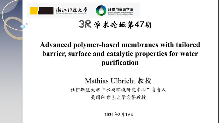 在本次报告中,Ulbricht教授分享了他们科研团队有关分离膜制备的最新研究成果,所研发的新型膜材料可用于水处理领域的滤、纳滤、反渗透、正渗透,以及二氧化碳吸附和转化等工艺当中,对于建立可持续的水净化与回用、温室气体捕集与高值转化具有重要意义。