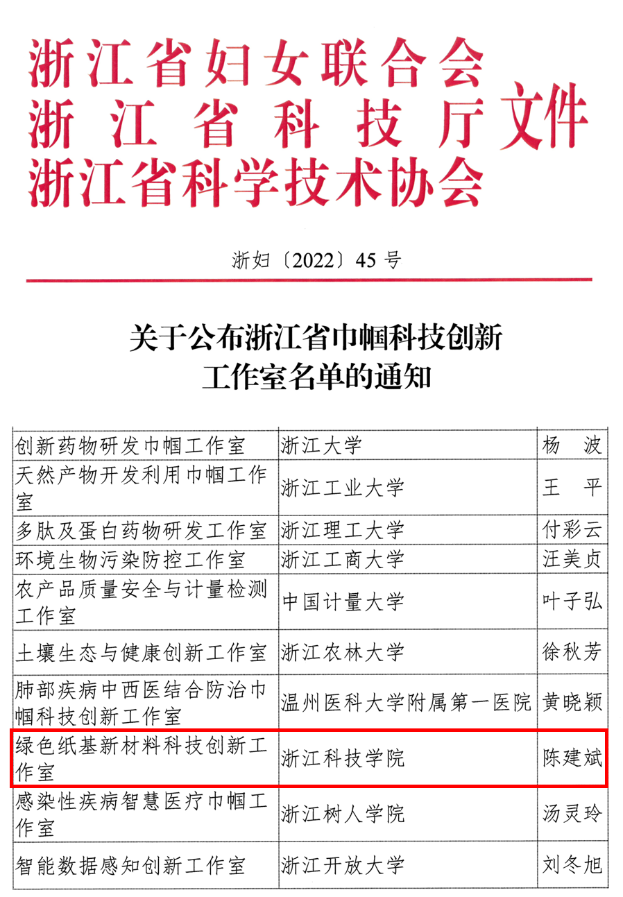 陈建斌教授级高工领衔的绿色纸基新材料科技创新工作室榜上有名。