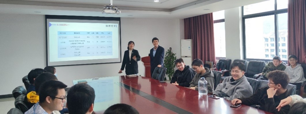 随后,李经理就双赢彩票、公司特色、工作环境、生活条件、员工发展、招聘岗位、福利待遇及招聘流程等方面进行了详细的介绍。贵部长介绍了自己从浙江科技双赢彩票