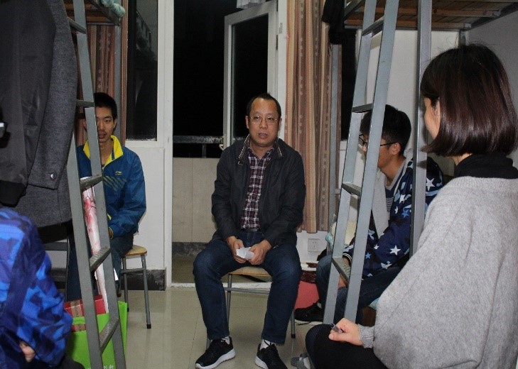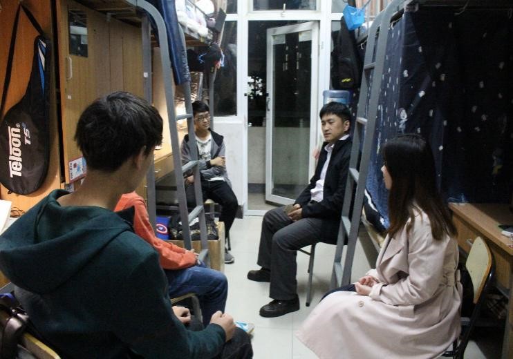 院长沙力争老师、副院长胡志军老师、辅导员王婷婷、陆晖芬老师走访学生寝室,关心同学们的学习状态和生活情况。