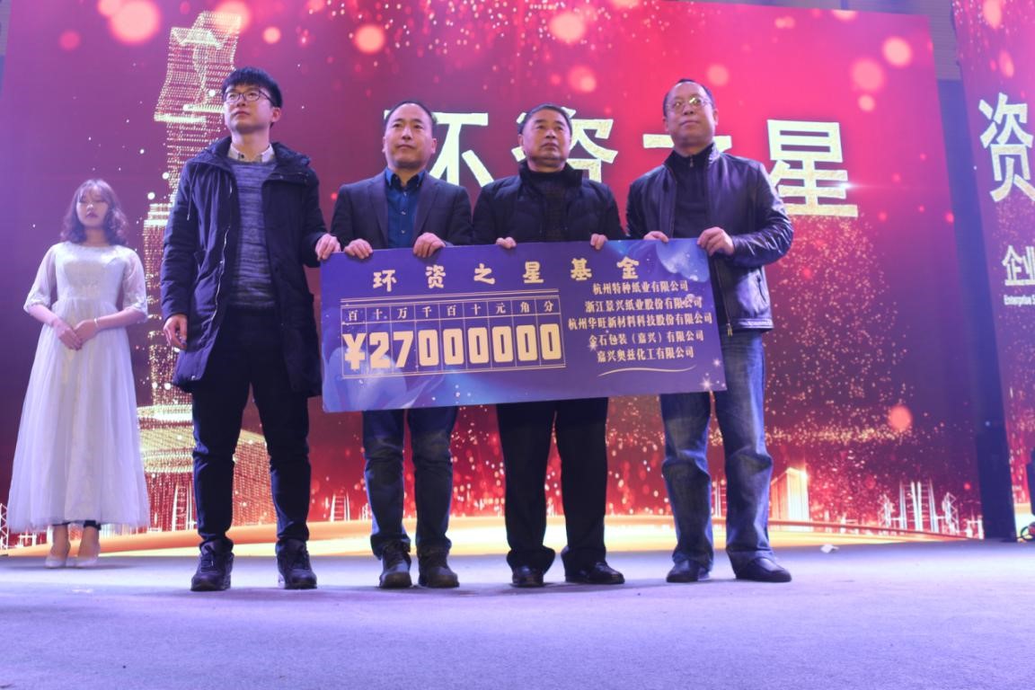 对同学们从大一到大四成长的美好祝福。在“环资之星”企业奖学金设立仪式环节,沙力争院长与杭州特种纸业有限公司副总经理吴安波,杭州华旺新材料科技股份有限公司副总经理吴海标,嘉兴奥兹化工有限公司技术部经理屠文浩上台进行了捐赠交接仪式,沙院长就2018年度双赢彩票