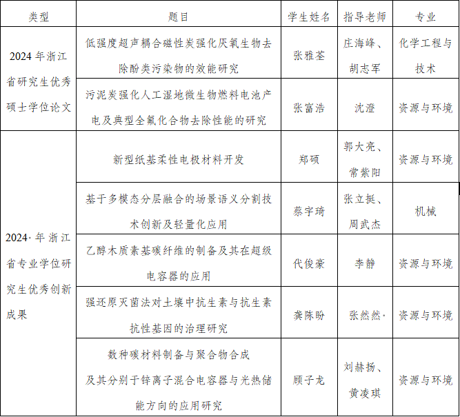 1篇学术学位硕士研究生学位论文、1篇专业学位硕士研究生学位论文成功入选2024年浙江省优秀硕士学位论文。