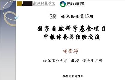 获得2021年度国家自然科学基金项目资助的三位老师鲁祎、常紫阳和李勇超进行经验分享与交流,特邀浙江工业大学博士生导师杨晋涛教授做题为“国家自然科学基金申请体会交流”的主题报告,胡志军副院长和二十余位教师参加了报告会。