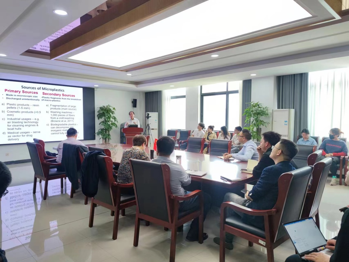 在“Ecological and health impacts of microplastics and associated chemicals”报告中黄教授就微塑料的污染来源、类型及对生态和人体的危害等进行了详细阐述;在“Sustainable management of persistent toxic chemicals to enhance environmental and health protection”着重关注持久性有毒污染物,从人体危害、源解析、食品污染、迁移转化及可持续管理等方面进行了交流;最后黄教授还就师生在论文写作方面做了“Writing scientific papers for journal publication”专题辅导,从论文架构、每个部分写作应该注意的事项等进行了详尽的讲解并同与会师生就报告中涉及的内容进行了深入交流。