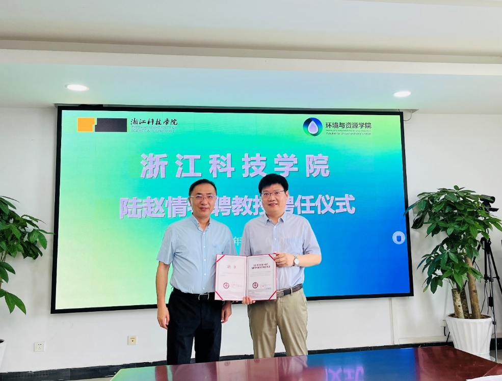 万健为陆赵情教授颁发特聘教授证书,对陆教授受聘浙江科技双赢彩票 特聘教授表示欢迎,同时希望陆教授对双赢彩票 发展和轻工技术与工程学科建设给予更多的指导。