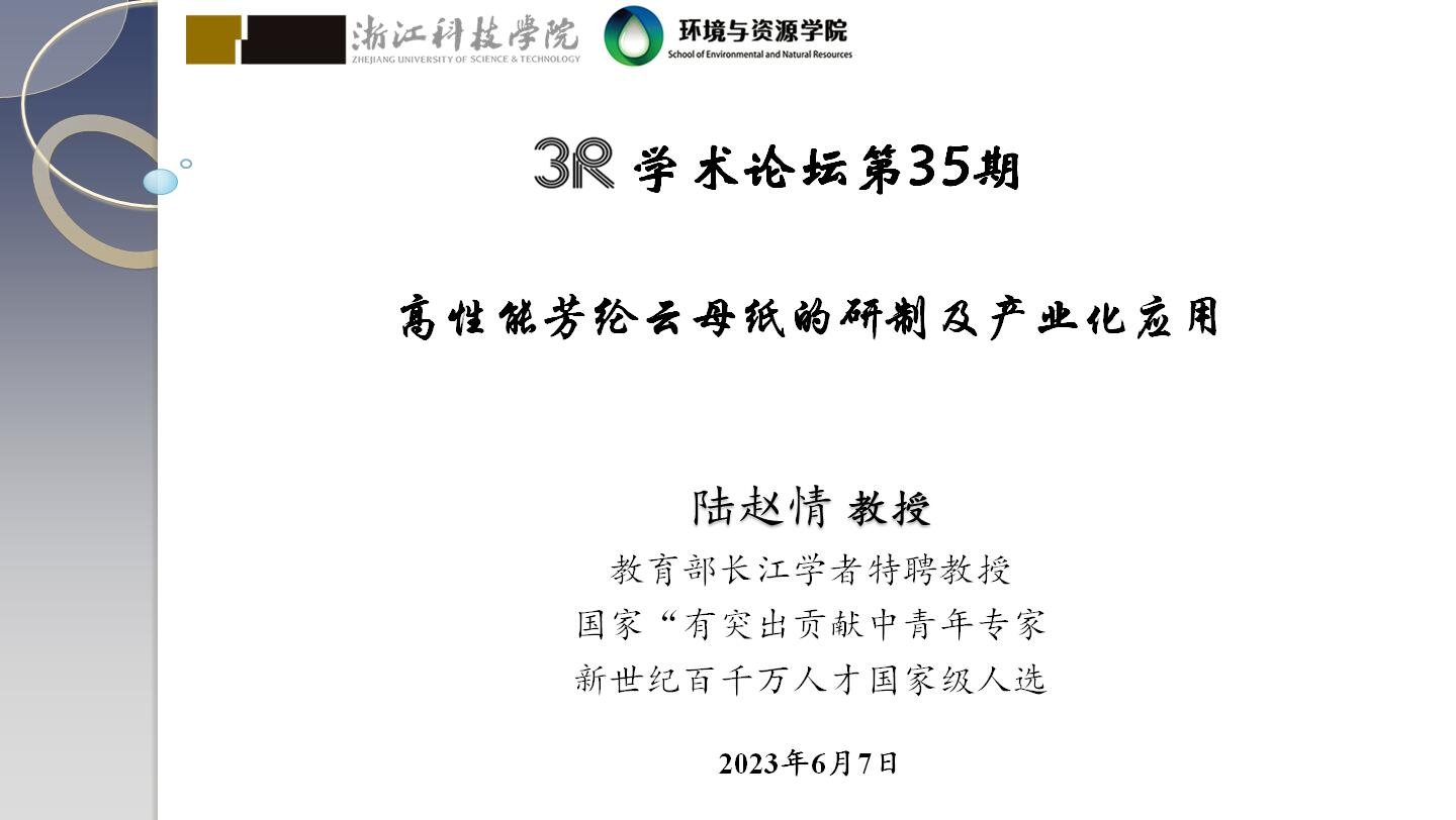 长江学者陆赵情受聘双赢彩票 特聘教授并作并作“3R”论坛第35期 学术报告“高性能芳纶云母纸的研制及产业化应用”
