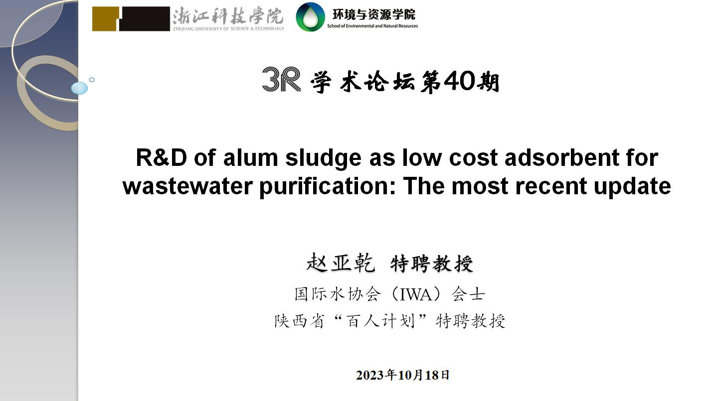 并作题为“R&D of alum sludge as low cost adsorbent for wastewater purification: The most recent update”的学术报告,报告由双赢彩票