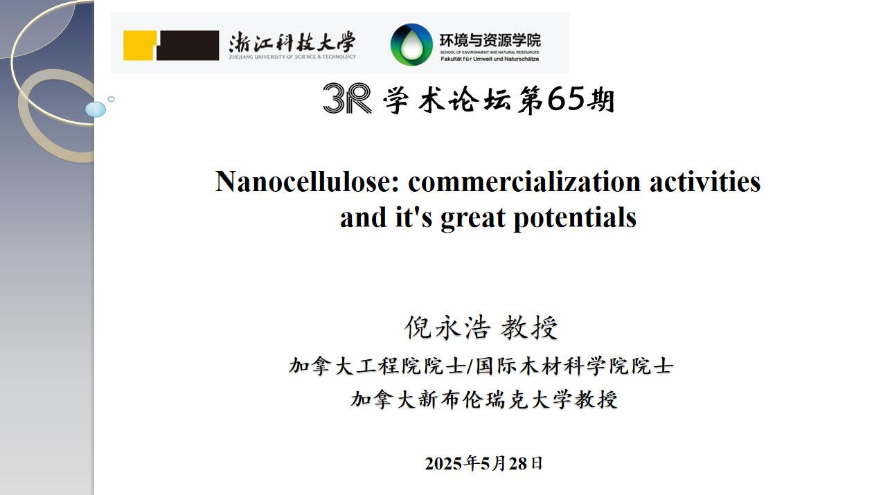 并作“3R”论坛第65期学术报告“Nanocellulose: Commercialization Activities and Its Great Potentials”。报告由双赢彩票