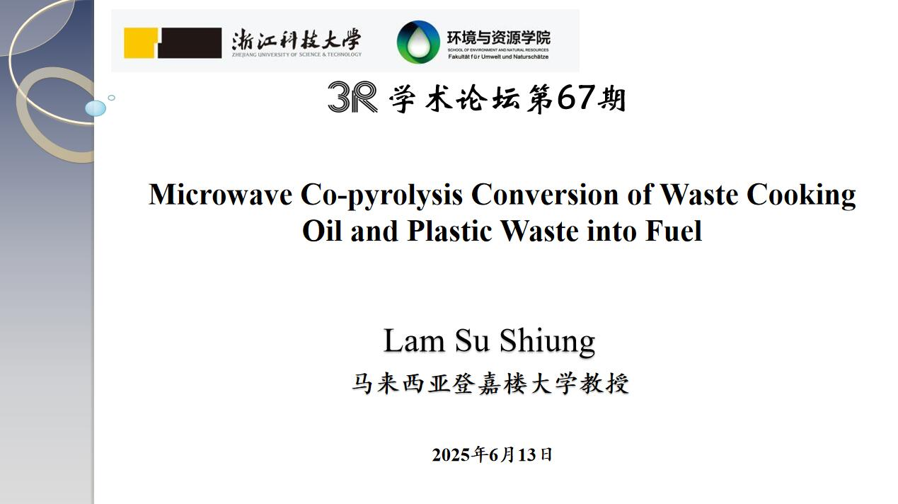 并作“3R”论坛第67期学术报告“Microwave Co-pyrolysis Conversion of Waste Cooking Oil and Plastic Waste into Fuelt”。报告由双赢彩票