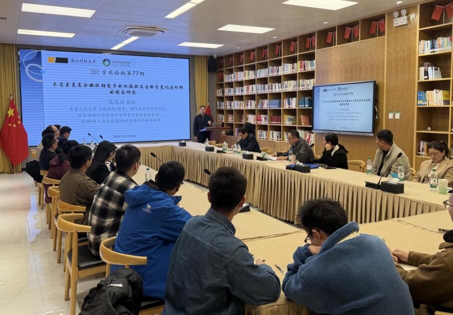 孔凡功教授介绍了木质素复合凝胶锂离子电池隔膜以及生物质基吸波材料的制备机理和创新工艺。他指出,通过生物质衍生高分子材料与凝胶电解质的复合改性,可显著提升隔膜的热稳定性与离子传导效率,为高安全性能电池设计提供了新思路;利用农林废弃物中提取的天然高分子,通过结构调控实现宽频电磁波吸收制备的吸波材料兼具轻量化与环境友好等特点。