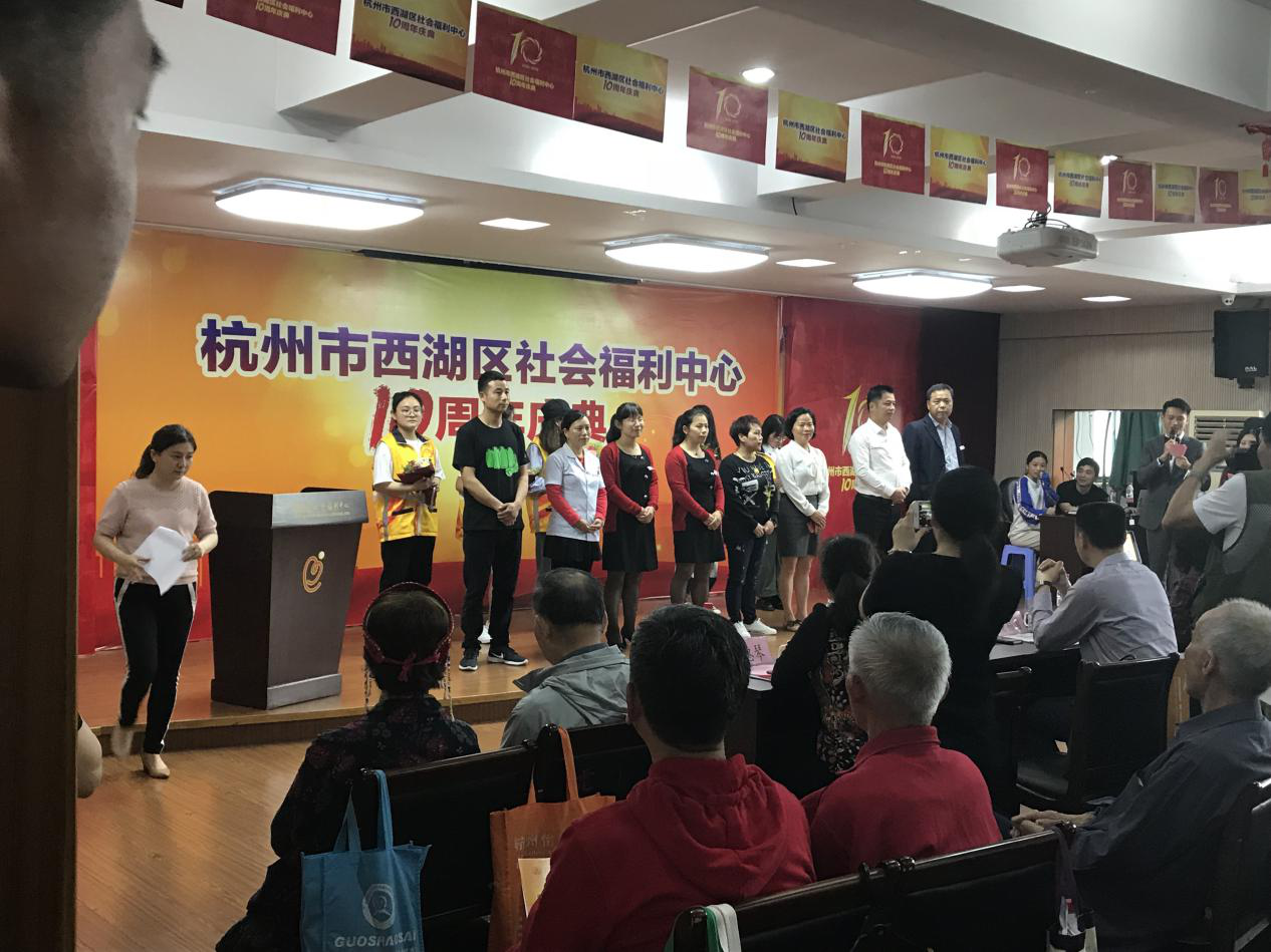4月24日,正值杭州市西湖区社会福利中心成立十周年庆典,环资志愿者协会10名志愿者再次来到了这里,又见到了可爱的爷爷奶奶们,同时为十周年庆典也付出了自己的一份力量!
